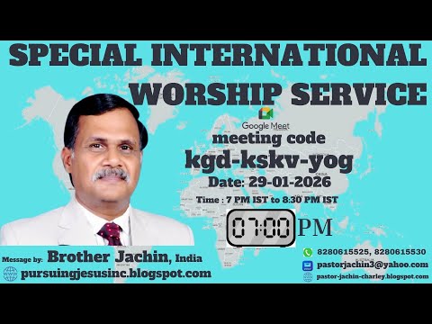 Brother Jachin from India spoke in Special International Worship Service in this Thursday with Pastors and Evangelists working all over the world through online Google Meet and sharing the God's Word. By the Mighty Power of Holy Spirit all Pastors and Evangelists learning many many Great and Mighty things from God and Experiencing His Presence. We are giving our heartful thanks and expressing our gratitude to Brother Jachin Garu for joining with us this Thursday with English speaking people and encouraging us and comforting us with God's Word four days in a week. Amen. Hallelujah. Thank you Jesus for speaking with us through your Beloved Child. Thank you Holy Spirit for Reveling us Many Great and Wonderful Truths and Mysteries from God's Word. Amen and Amen
