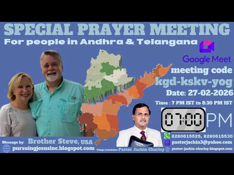 Brother Steve Garu from USA spoke in Special Prayer Meeting this Friday with Pastors and Evangelists working in the rural villages and tribal areas in Andhra and Telangana on Google Meet and sharing the God's Word. Pastor Jachin translated the message from English to Telugu. By the Mighty Power of Holy Spirit all Pastors and Evangelists learning many many Great and Mighty things from God and Experiencing His Presence. We are giving our heartful thanks and expressing our gratitude to Brother Steve Garu for joining with us every Tuesday with Hindi speaking people and Wednesday with Bengali speaking people and Thursday with English speaking people and Friday with Telugu speaking people and encouraging us and comforting us with God's Word four days in a week. Amen. Hallelujah. Thank you Jesus for speaking with us through your Beloved Children. Thank you Holy Spirit for Reveling us Many Great and Wonderful Truths and Mysteries from God's Word. Amen and Amen